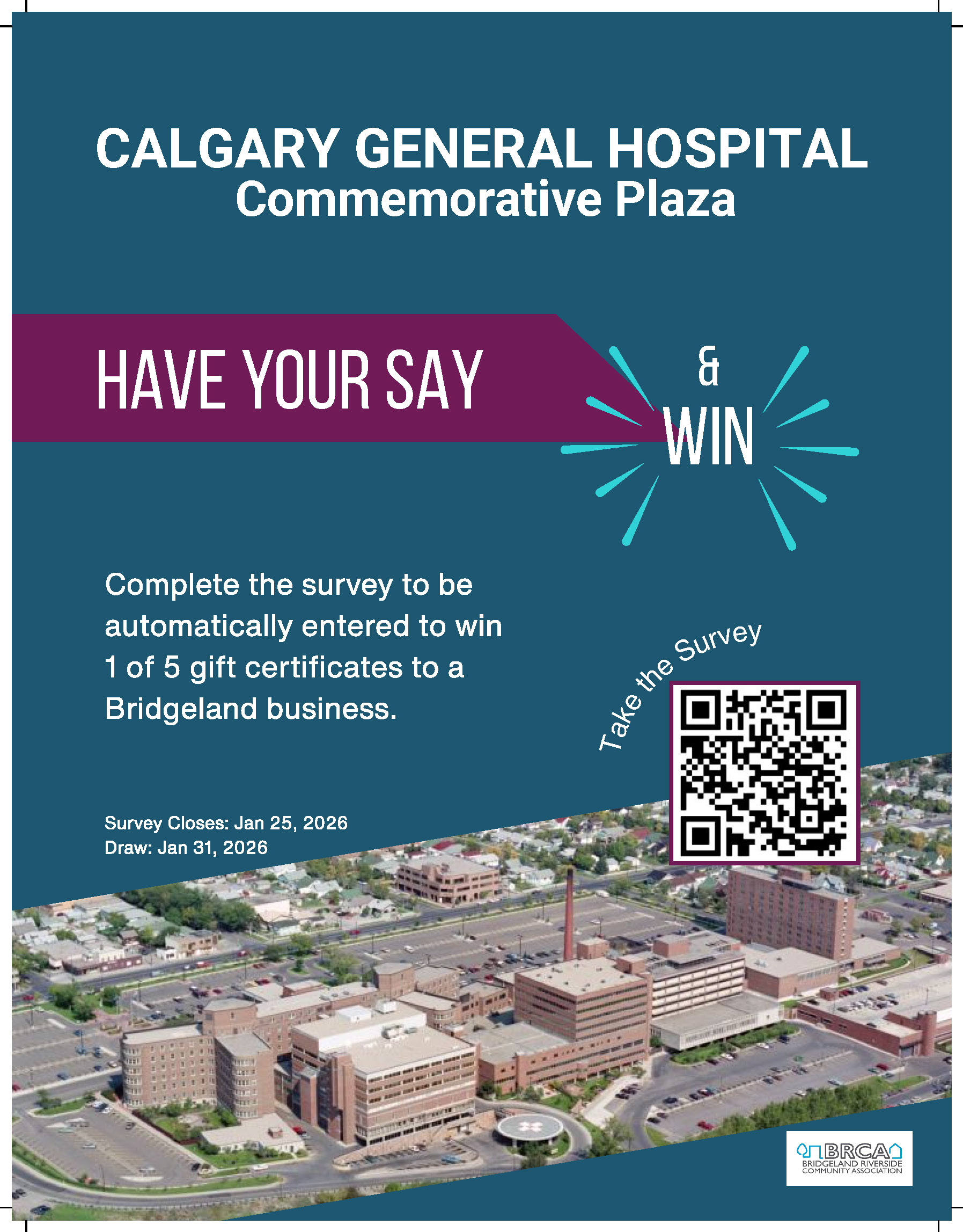 The deadline to complete the survey is January 25, and you’ll have the opportunity to win one of five gift cards to a Bridgeland business.