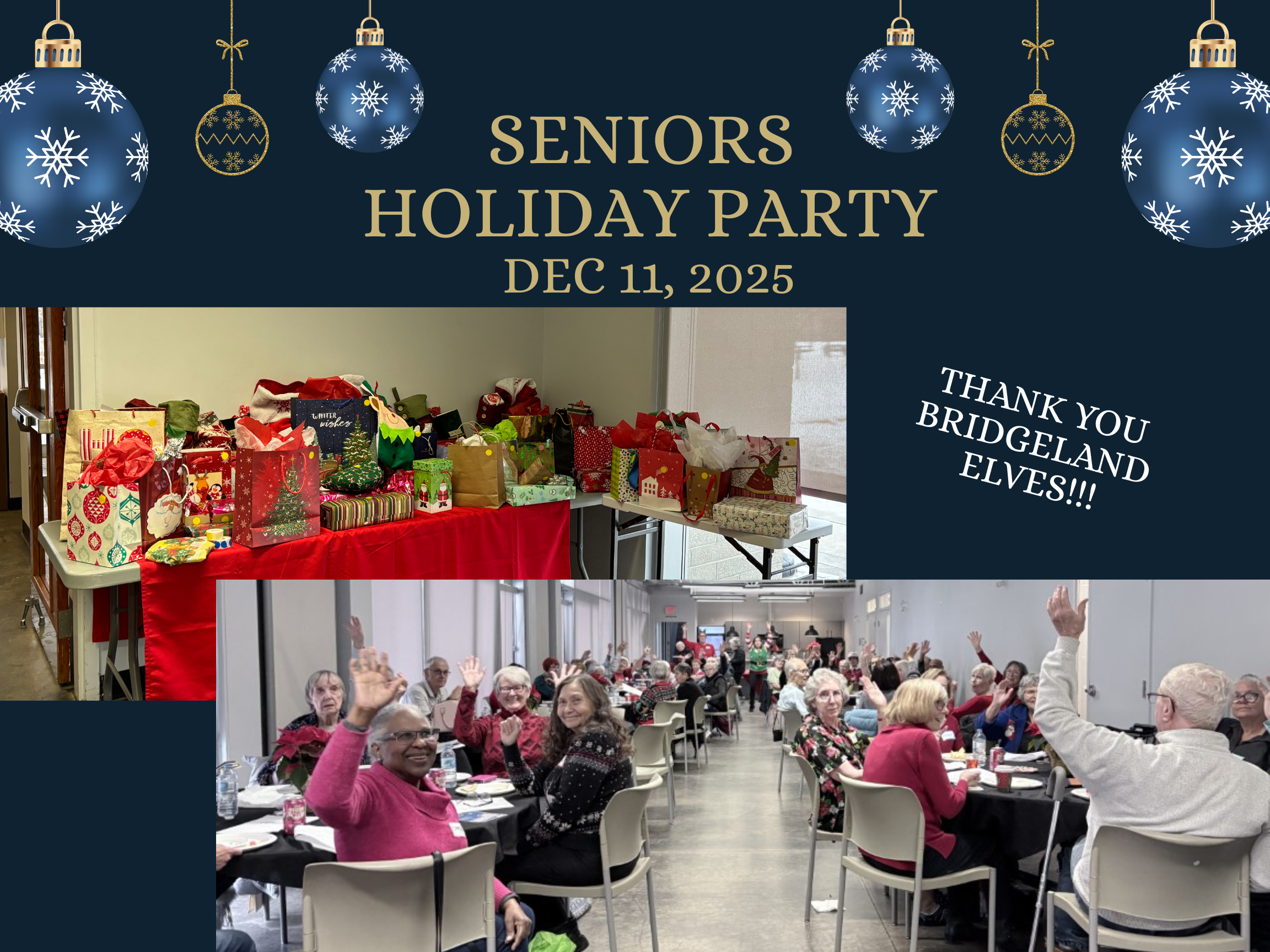 Bridgeland seniors enjoyed the Holiday Party on December 11, 2025, an evening of card making, with music, friends, laughs, and presents galore.