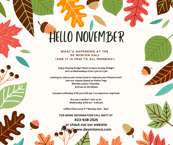 Nearby CommunitiesDe Winton De Winton Community Association Says Hello November! By De Winton Community Association - October 31, 2025 0 7 Click here to the DeWinton Community News home page for the latest DeWinton community updates.