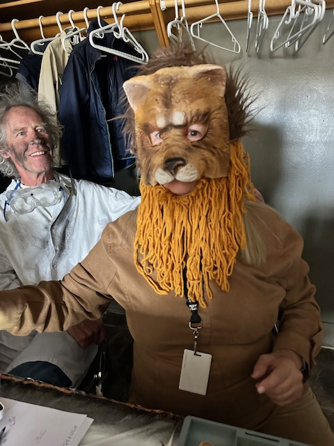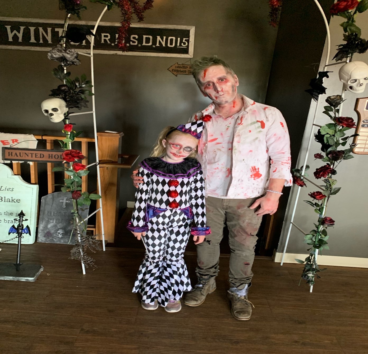 Cody and Maggie suit up for hiding in the Haunted House! (with permission).