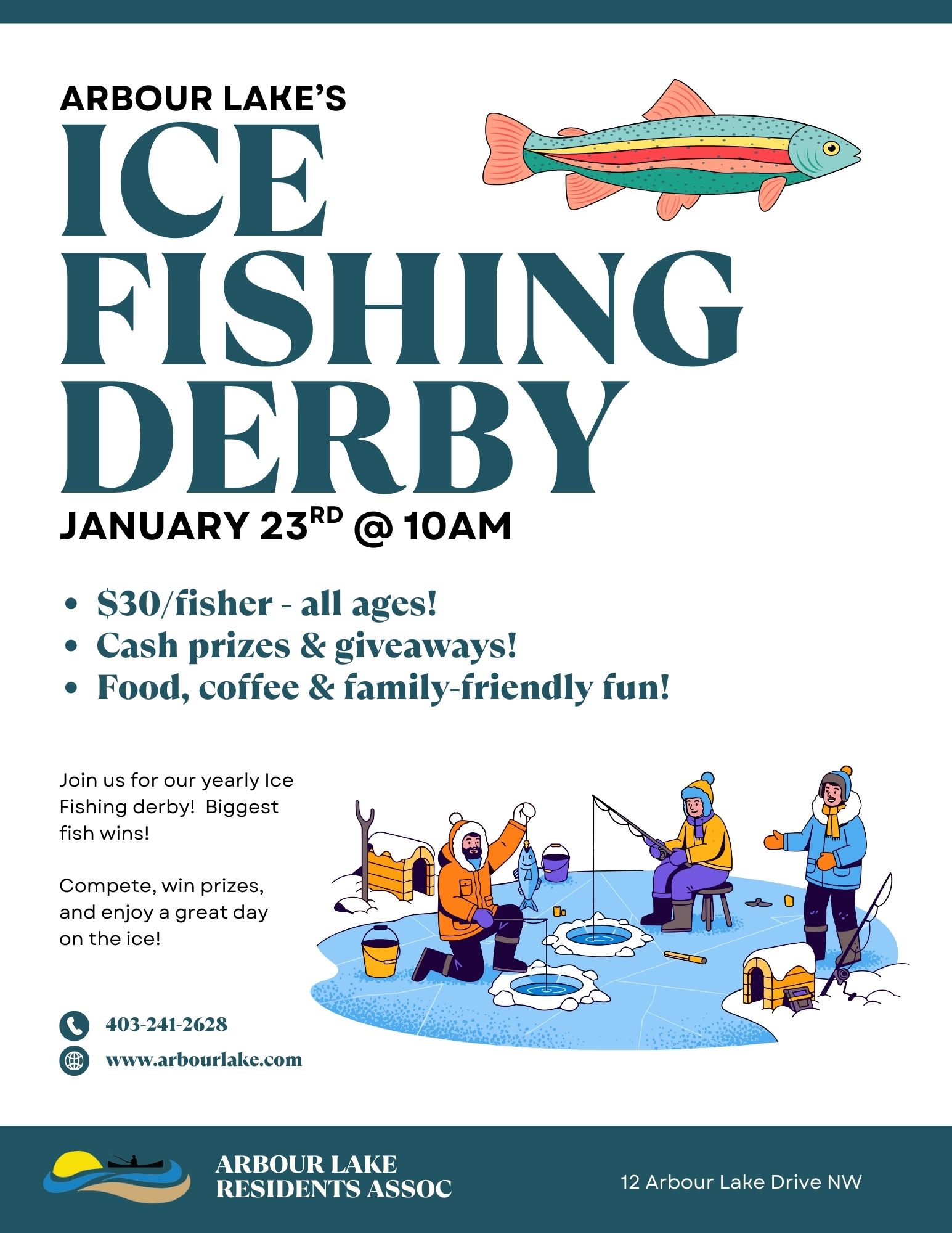Join us for our yearly Ice Fishing Derby! Biggest fish wins! Compete, win prizes, partake in free giveaways and enjoy a great day on the ice! $30 per person, lunch and coffee included!