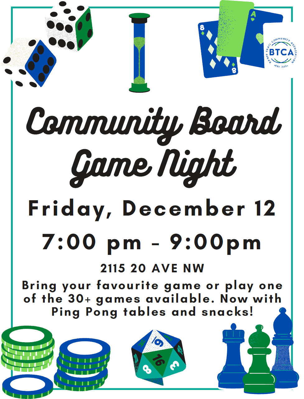 NW CommunitiesBanff Trail Banff Trail’s Community Board Game Night – December 12 By Banff Trail Community Association - October 31, 2025 0 15 Click here to the Banff Trail Community News home page for the latest Banff Trail community updates.