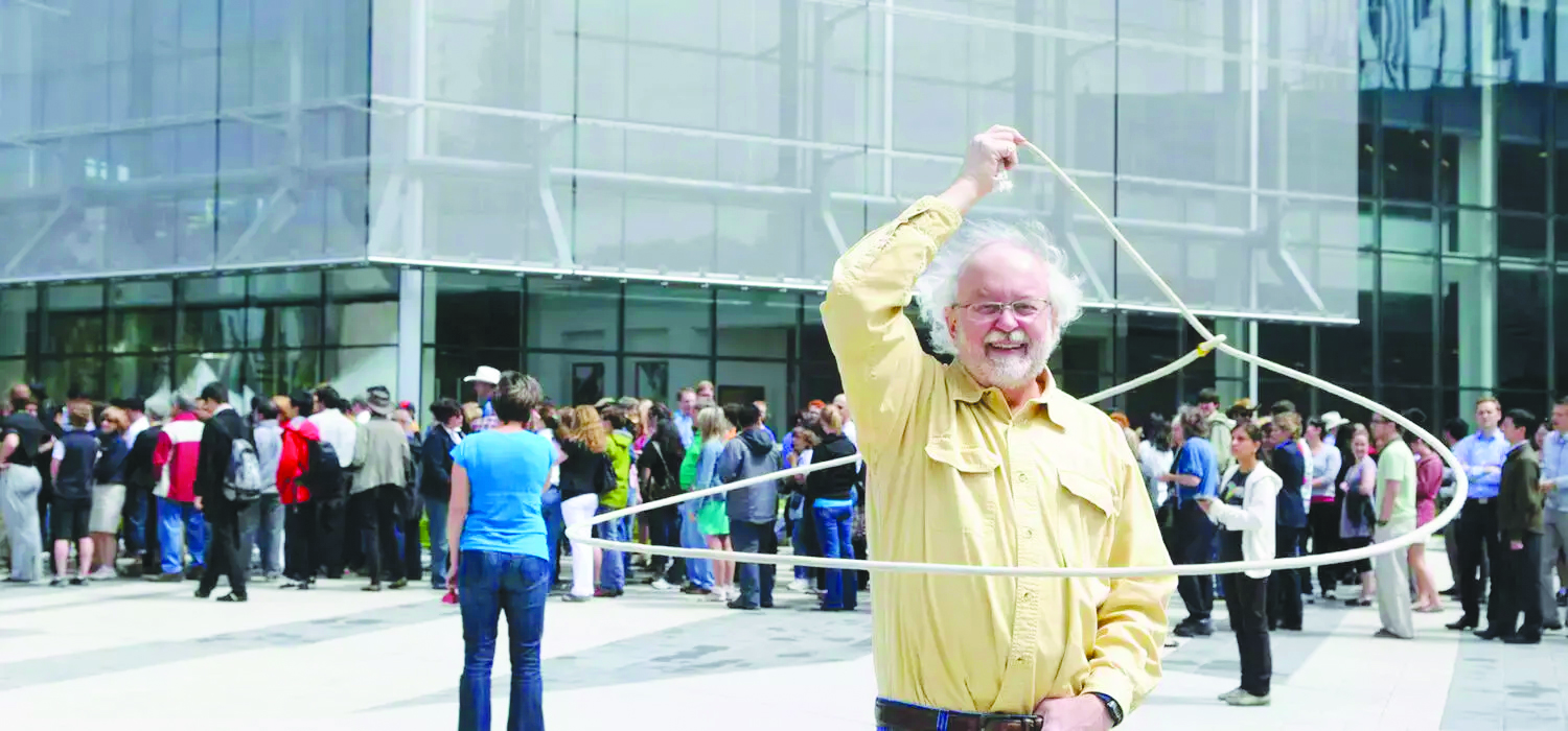 It was not until I attended the crowded memorial service for Don that I learned of his fascinating and unconventional upbringing: born in Manchester, England and raised in Calgary, his parents were vaudevillians who travelled the world putting on a “Wild West” show. It wasn’t long before young Don joined the family act as “Billy the Kid”, and he quickly became an expert at lasso tricks, a skill he retained even after he turned to academia.