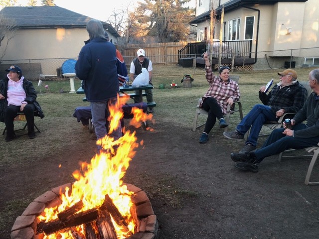 These evenings started in October 2020 during COVID, six feet distancing and all, as a way to give people a chance to gather. It was also a way to use up dry firewood Ian collected while working in his backyard. There were five people that first night; there were 22 people in August, just before I spoke with Ian. The word spread among friends and neighbours, and the numbers grew. People and dogs are welcome. The only rules are no politics and no religion. People bring their own snacks, sometimes there’s a potluck, and sometimes Ian, who enjoys cooking, offers up his famous meatballs.