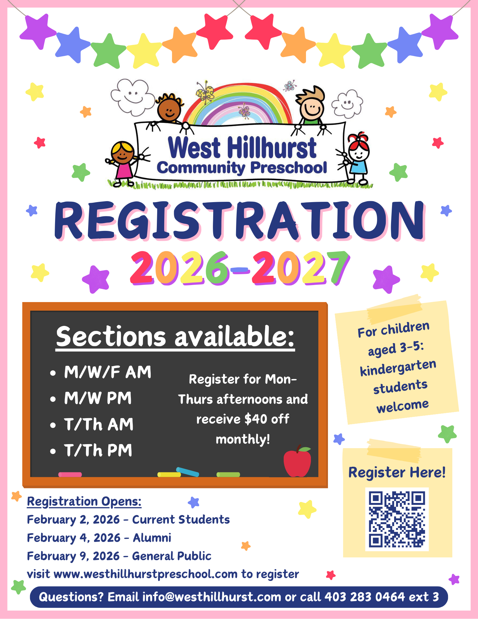 We’re now getting ready for registration for the 2026–2027 school year. We’ll be offering both morning and afternoon classes again, and open registration begins in February. Please check our website for details on priority registration dates.