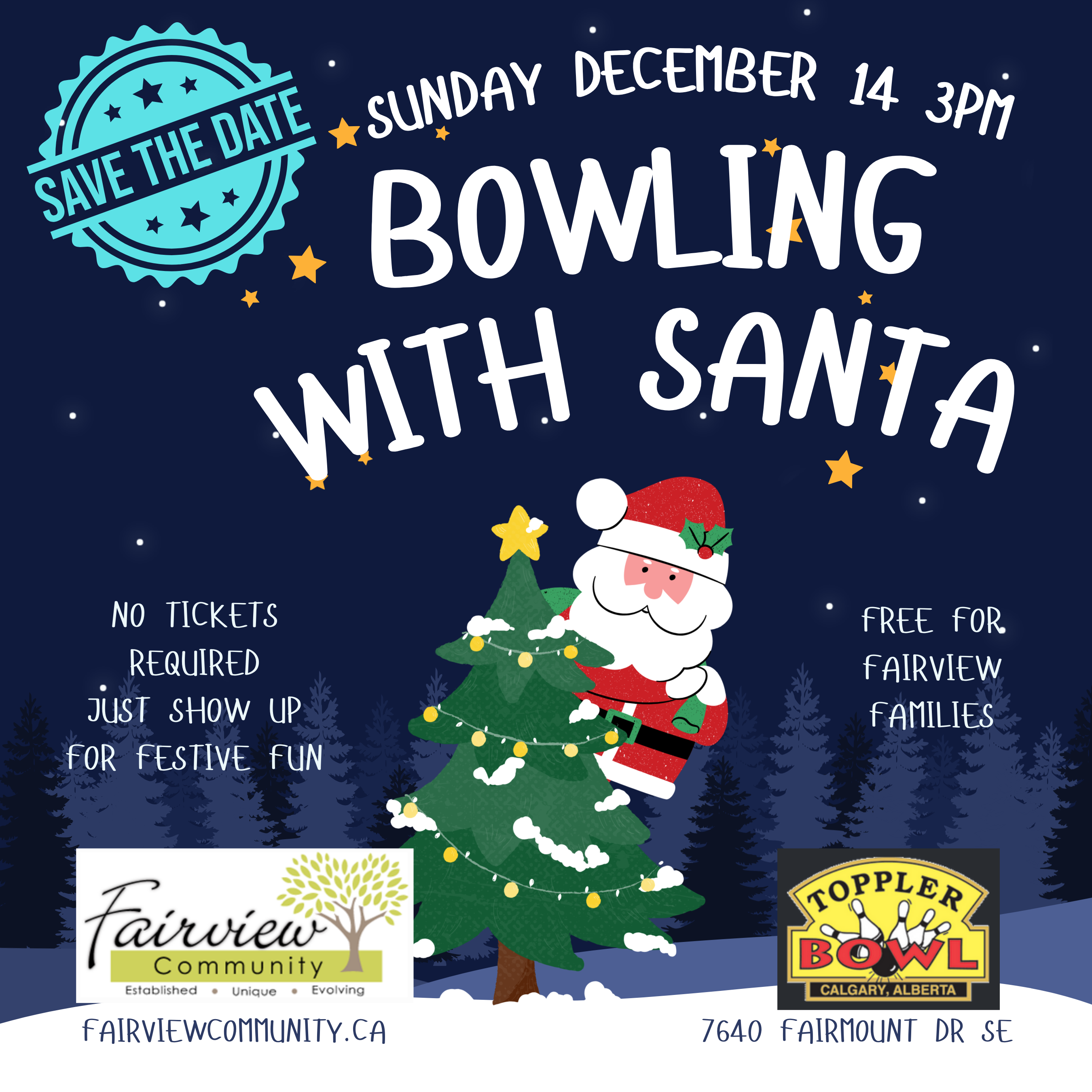 Join the Fairview Community Association at Toppler Bowl (7640 Fairmount Dr SE), a long-established community partner and Fairview neighbour. Since pivoting from “Skate with Santa” in 2018, this event has become a beloved community tradition, offering a fun and memorable visit with the big guy.