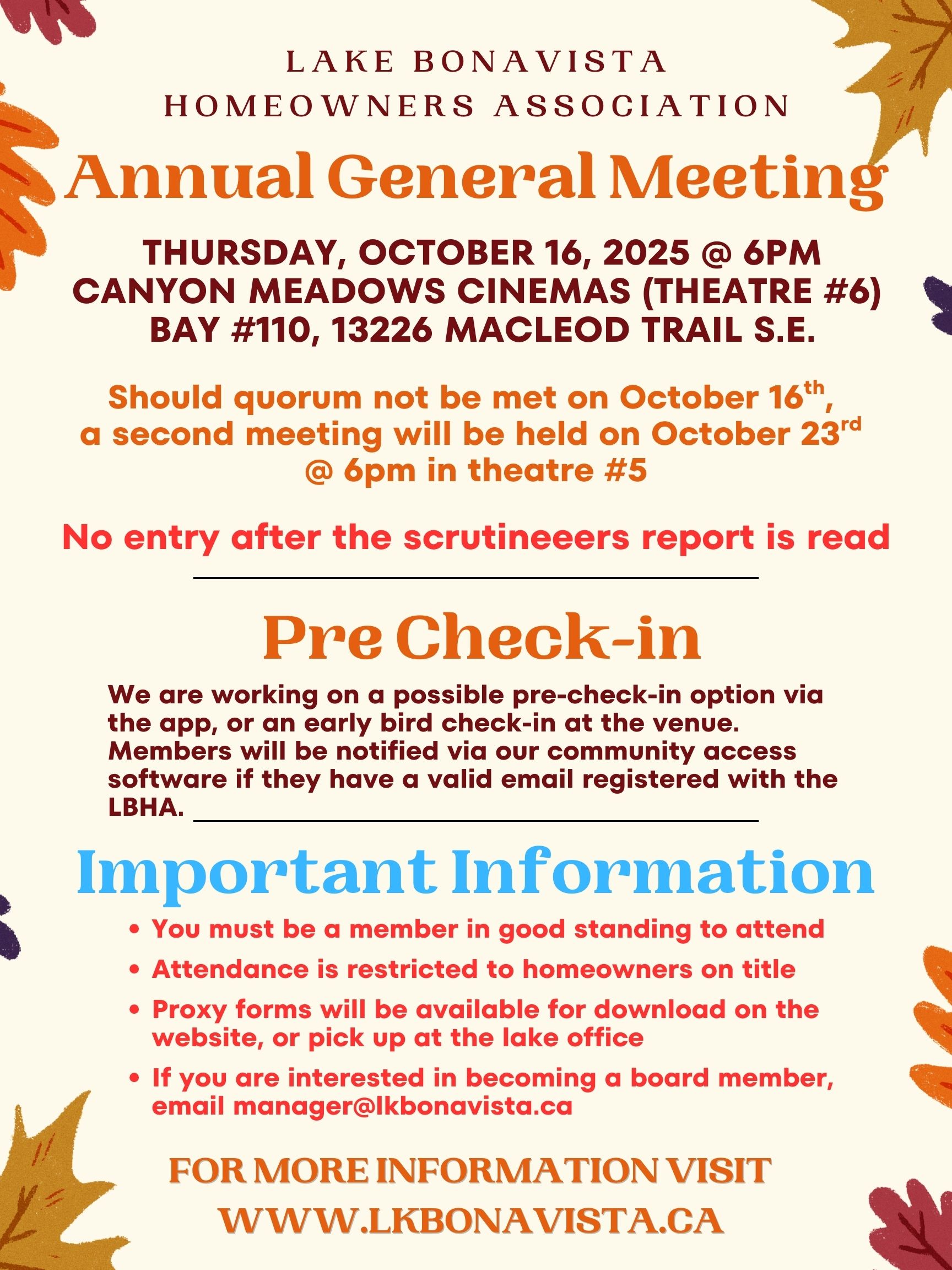 SE CommunitiesLake Bonavista Lake Bonavista Homeowners Association AGM By Lake Bonavista Community Association - October 7, 2025 0 13 Click here to the Lake Bonavista Community News home page for the latest Lake Bonavista community updates.