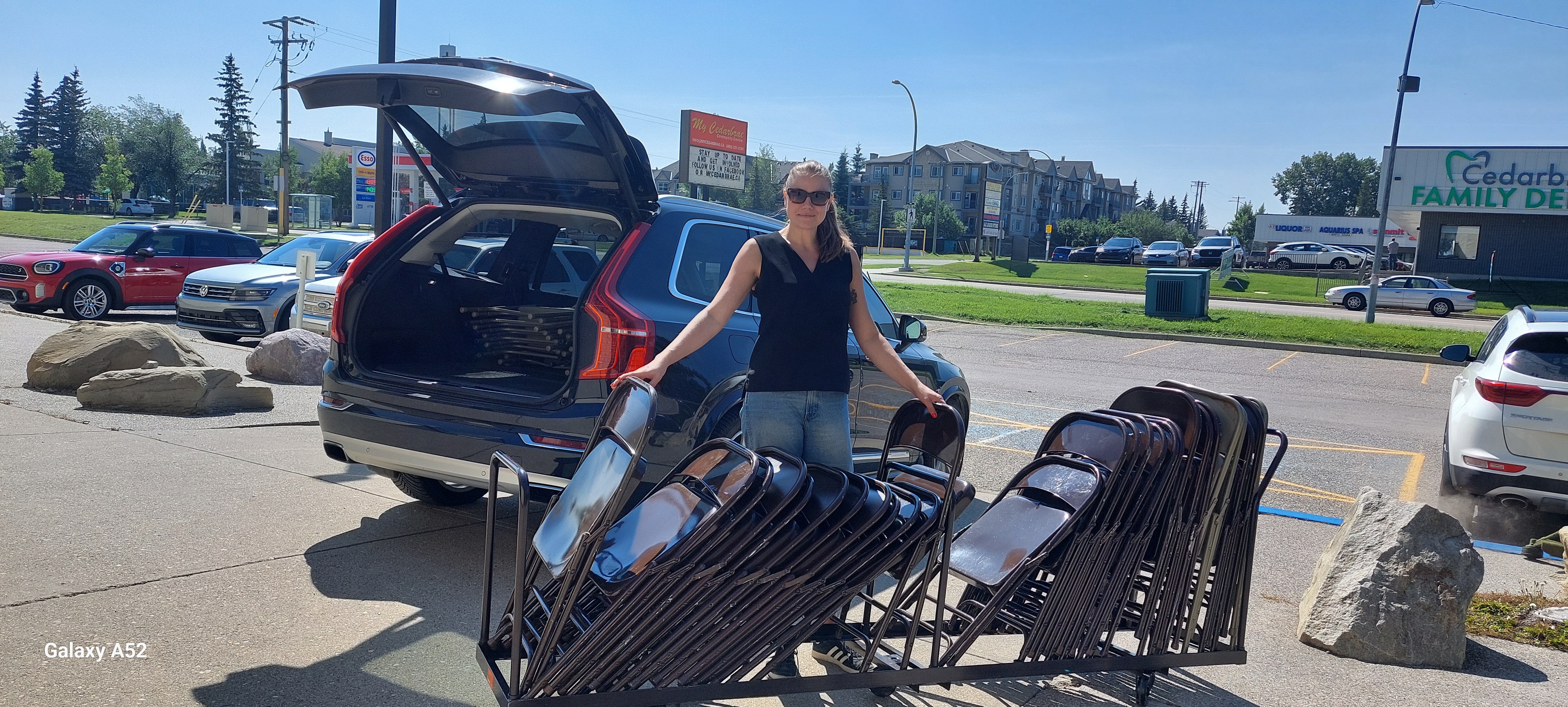 The Calgary Community Leadership Association (CCLA) has generously donated 100 chairs to the Sunalta Community Association, demonstrating a strong commitment to supporting local communities. This is a photo capturing the moment when Kaylee Bossert, Director of Operations at Sunalta Community Association, a representative of the Sunalta Community Association, received the donation on their behalf. Kaylee has given her consent for the image to be shared across our media platforms, allowing us to highlight this meaningful contribution and promote the spirit of collaboration and community support.