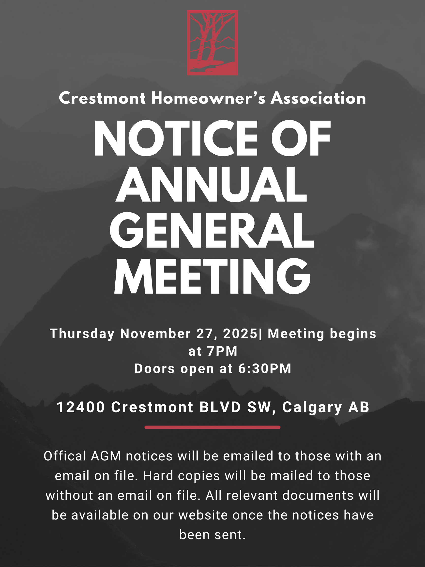SW CommunitiesCrestmont Crestmont’s Notice of AGM By Crestmont Homeowners' Association - September 30, 2025 0 6 Click here to the Crestmont Community News home page for the latest Crestmont community updates.