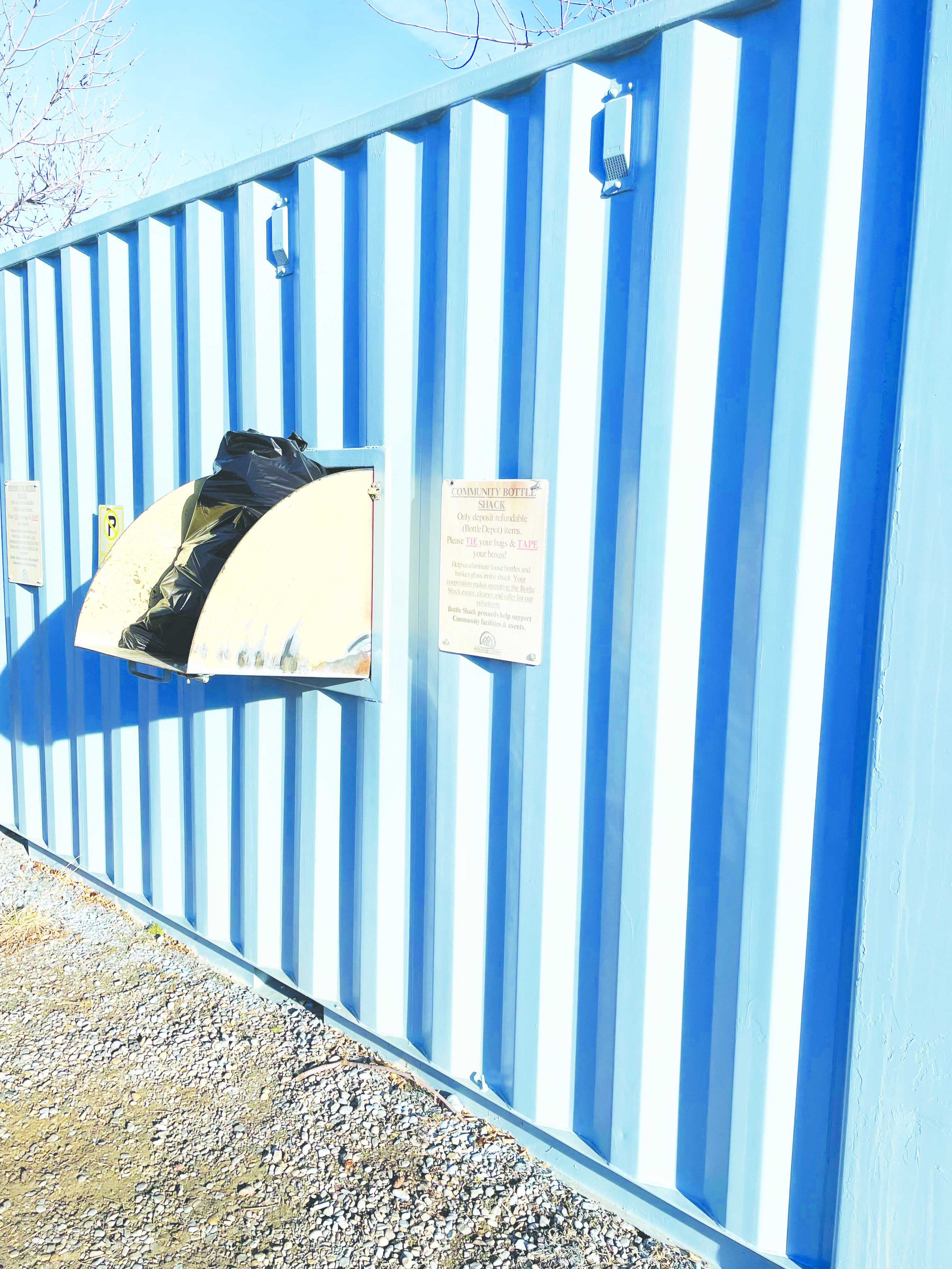 Did you know that Discovery Ridge has a community bottle shack where you can deposit your refundable beverage containers? It is conveniently located in the parking lot adjacent to the community recreation facilities (rink and tennis courts).