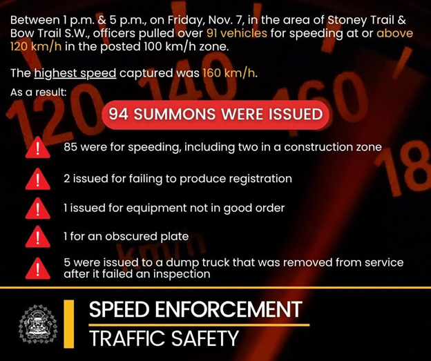 The Province of Alberta has prohibited the use of photo radar on all provincial highways and connectors. If you disagree with this mandate, please contact our MLA, Mike Ellis, to advocate for the return of photo radar usage. The CPS has shared with us that this is the most effective tool to combat speeding on highways like Stoney Trail (Reminder – Stoney Trail is a Provincial Highway).