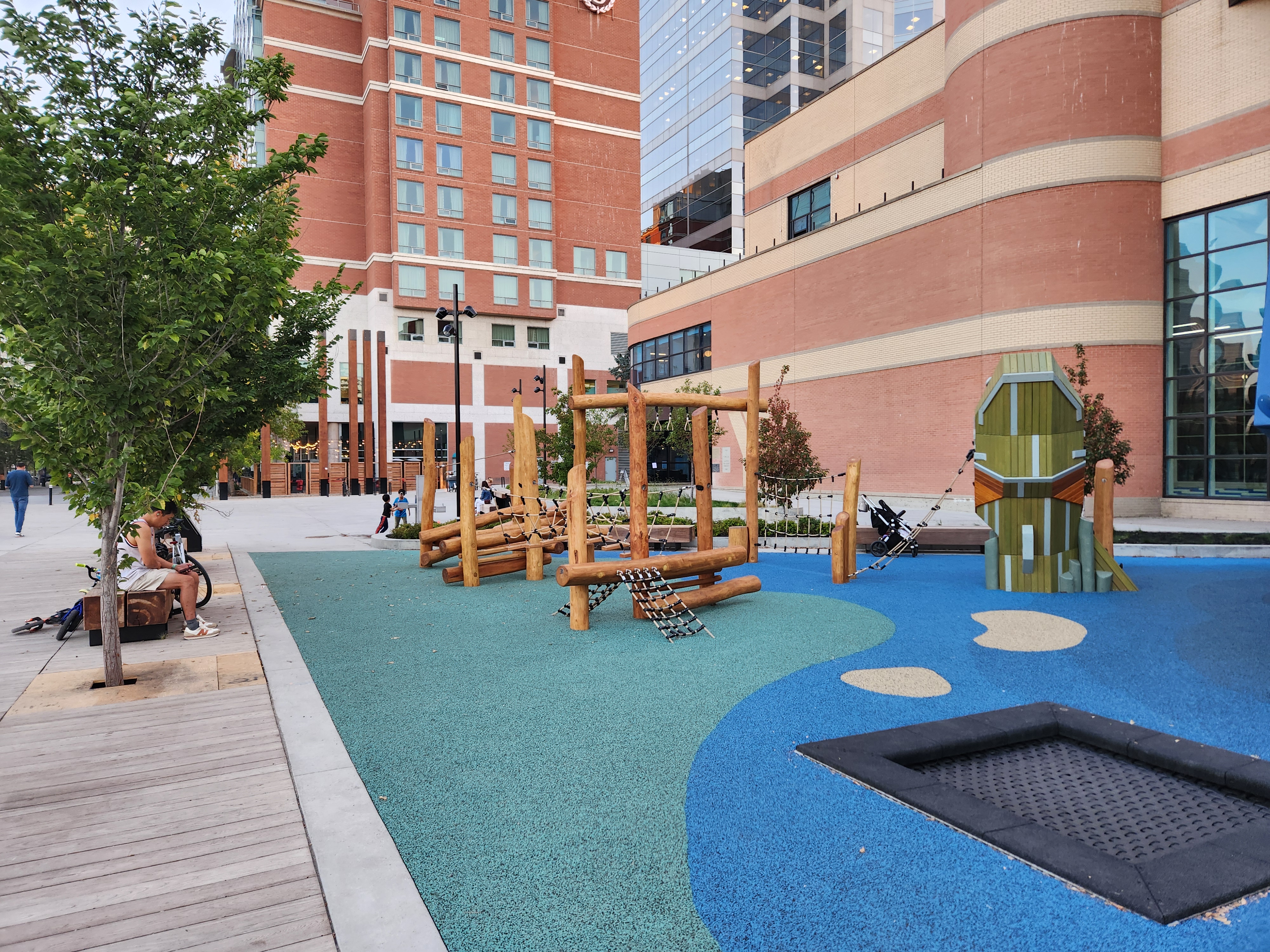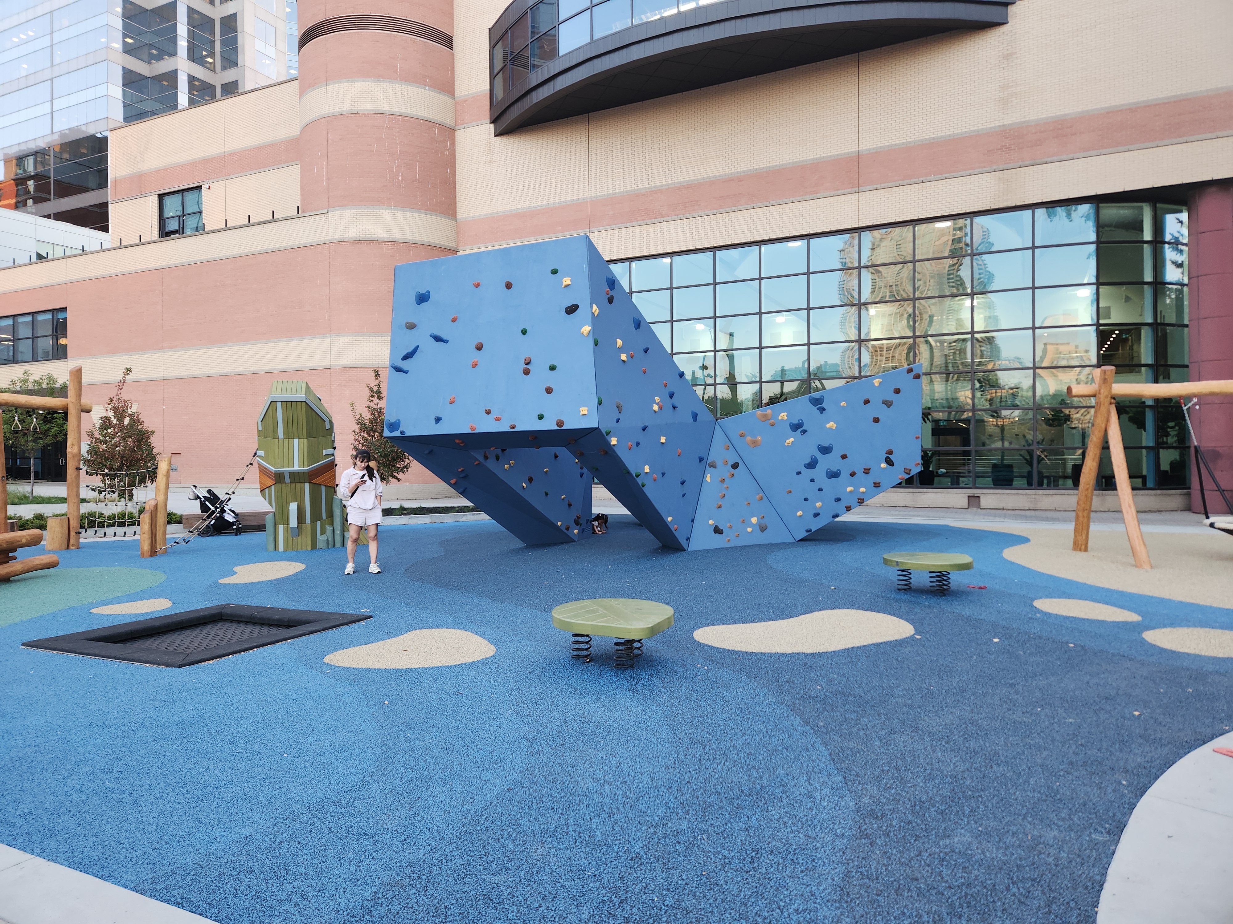 Kids (and kids at heart) can test their skills on the rock-climbing wall, shoot hoops on the basketball court, and adventure across the jungle gym. Stop by on your next river walk and see the newest spot to play, climb, and connect in our neighbourhood.