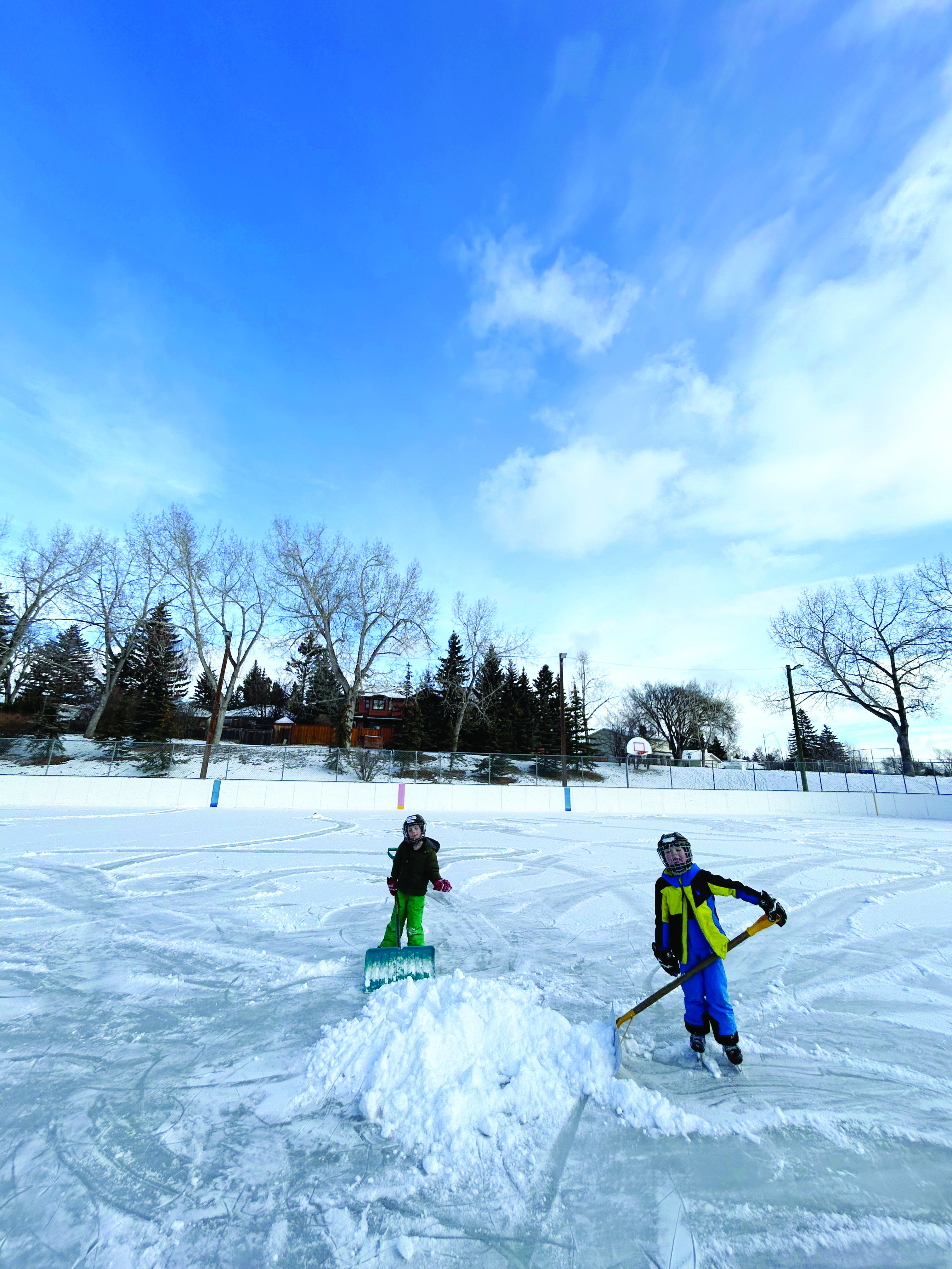 Starting in November, or whenever temperatures are consistently below zero, the Glendale flooding season ramps up. Most often, under the cover of darkness, our team of dedicated and plucky volunteers, donned with heated gloves and balaclavas, reel out the long, heavy hoses to flood the hockey and pleasure rinks, plus exterior loop. The entire process takes about two hours with a crew of three to five people, each assigned to a different night of the week. They return home late with cold runny noses and a fine mist frozen to their eyelashes. The flood crew are the real-life Jack Frosts (and Jill’s too, by the way) leaving a frozen gift in their wake. My husband of the Wednesday night crew says, “It gives me so much pleasure to watch the community use the rink. And the flooding part really is a social thing. It really brings us all together.”