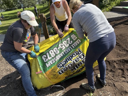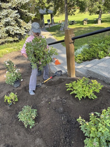 The rose garden beside the stairs is now a reality! The rose garden has been planted, roots are growing, and we will start to have a wonderful showstopper for the entrance of the Hall. Lessons learned! The rose garden area was weedy, and I believed solarization would do the job to kill them off; however, there was not enough sun and heat this summer. The plastic acted like a green house. Perhaps occultation, that is, using a dark plastic or tarp would have been a better choice. There are a lot of methods to suppress weeds, and I encourage people find what works for them. Just before the AGM, good soil, was added, twelve hardy rose bushes planted and topped with mulch. Expect rose blossoms in the spring. It will be a showstopper.