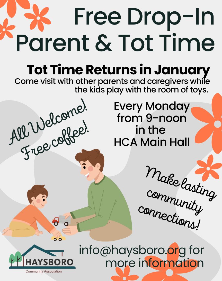 SW CommunitiesHaysboro Free Drop-in Parent and Tot Time in Haysboro By Haysboro Community Association - December 5, 2025 0 2 Click here to the Haysboro Community News home page for the latest Haysboro community updates.