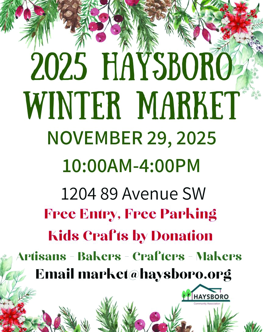 We can’t wait to celebrate the season with you. Mark your calendars, bring your friends and family, and come be part of the Haysboro market magic!