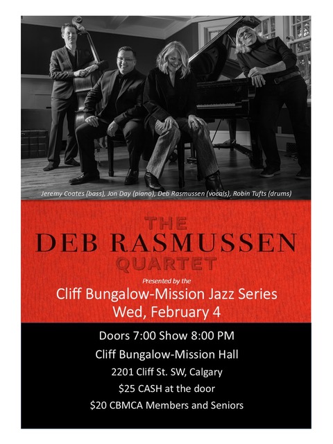 The Deb Rasmussen Quartet performance will feature an exciting mixture of Deb’s originals and well-loved standards. Jazz vocalist and songwriter Deb Rasmussen often takes a soft, understated approach to a song, but make no mistake, she can swing! She’s known for her spacious, playful interpretations of standards and for the way she makes time stand still as she connects heart-to-heart with listeners.