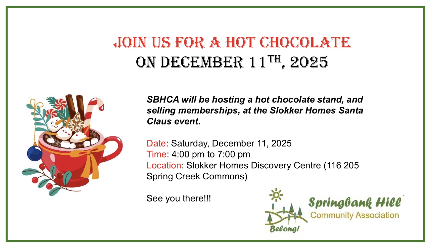 Click here to the Springbank Hill Community News home page for the latest Springbank Hill community updates.