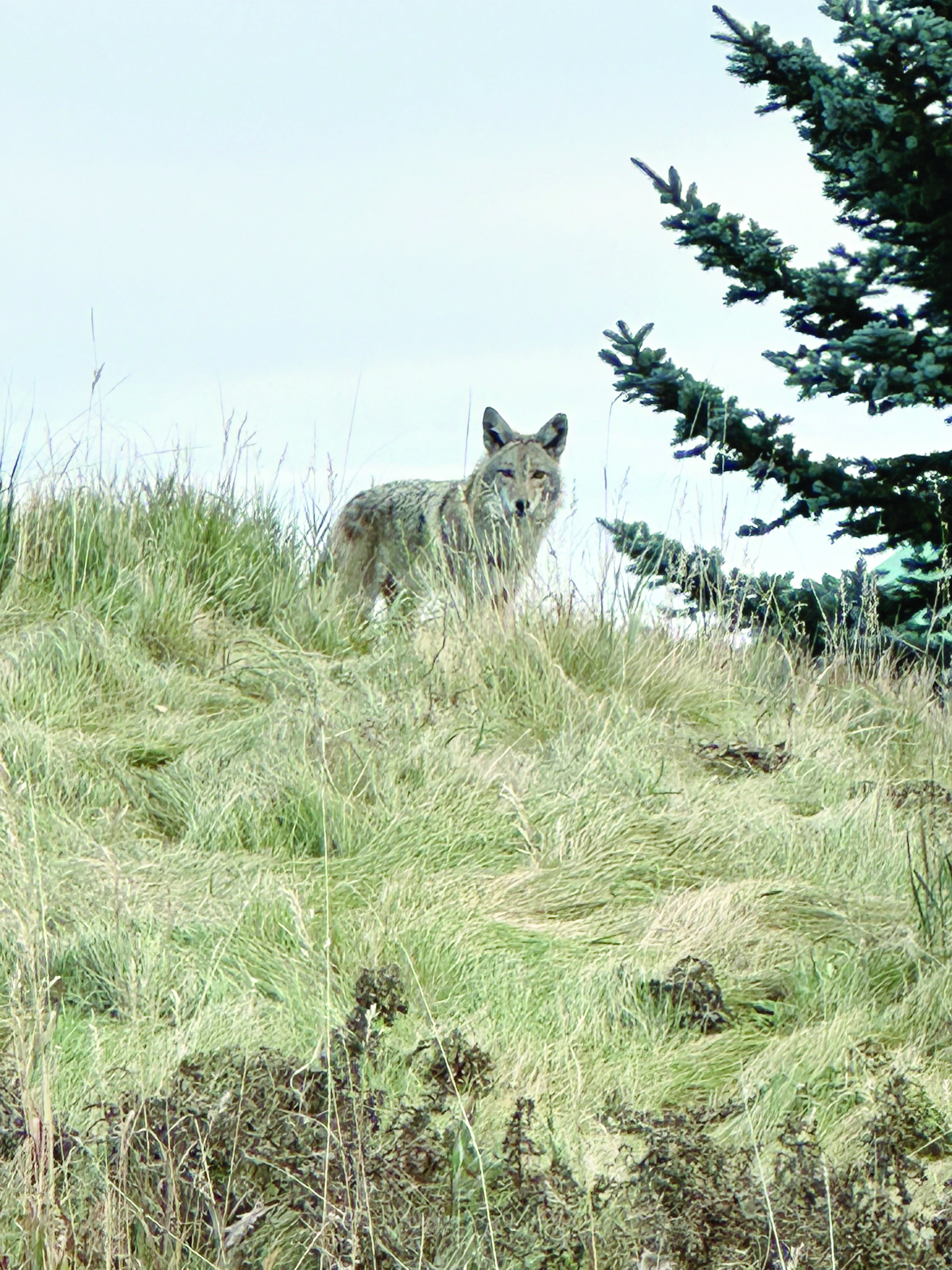 One of our resident coyotes struck a pose for this photo taken by Tracy B. back in the fall.