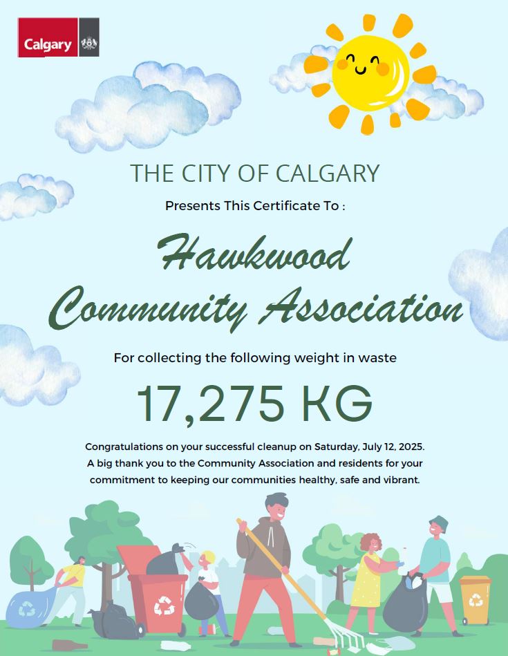 Community Hawkwood’s Cleanup Certificate from the City of Calgary By Hawkwood Community Association - September 30, 2025 0 7 Click here to the Hawkwood Community News home page for the latest Hawkwood community updates.