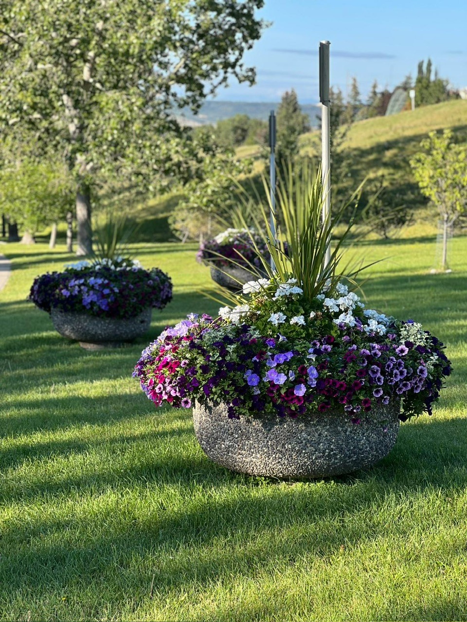 Road work at our Hawkstone Drive entrance off Nose Hill Drive has forced our hand to do something different at that location. Continued safety concerns from vehicular traffic at this location have resulted in attempts to provide a no-maintenance display here only to be hindered by winter road salt, extreme winds, and no shade. As such, this spot will receive a dry-bed rock feature with an additional flower planter set back from the intersection.