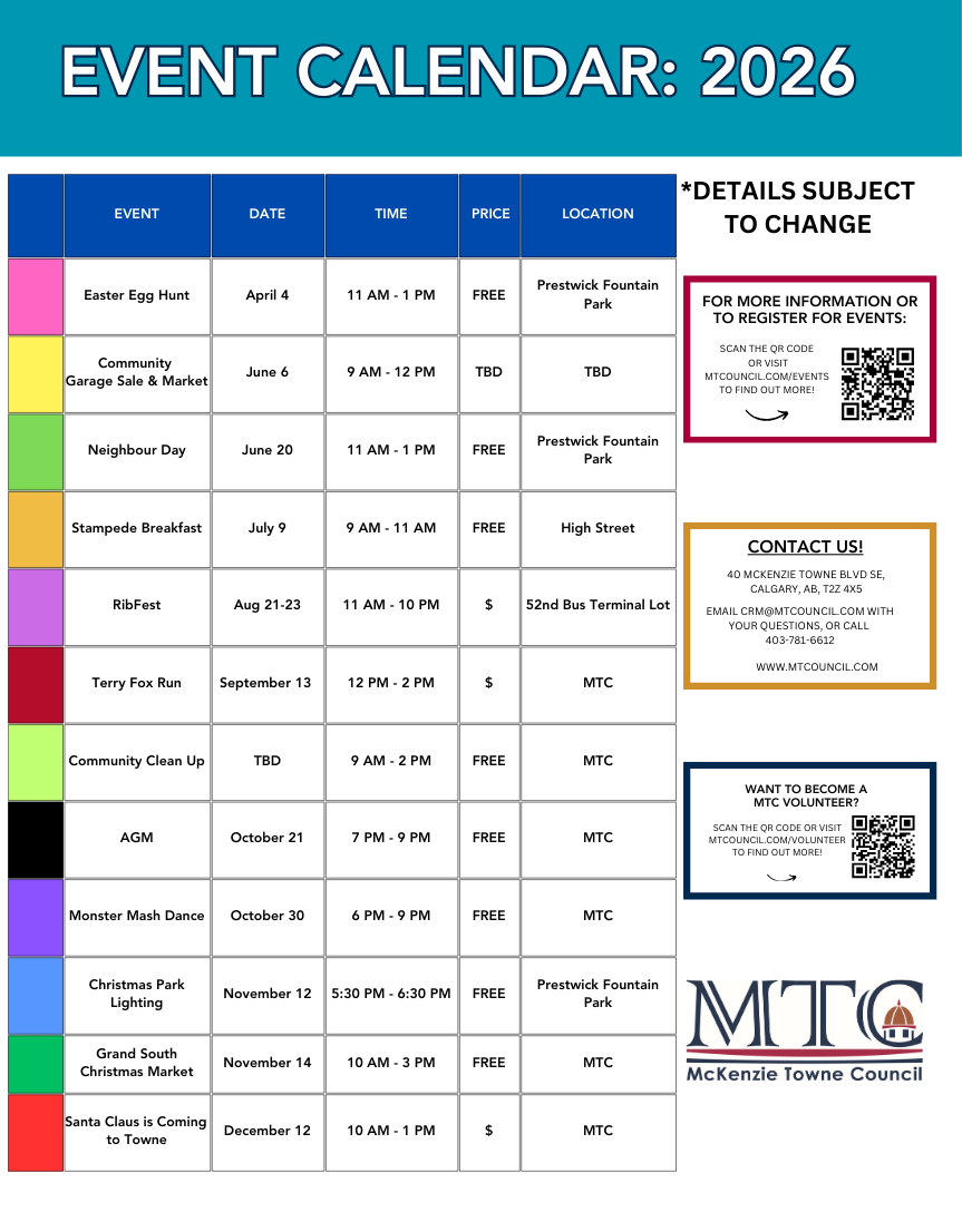 McKenzie Towne Council’s Event Calendar for 2026