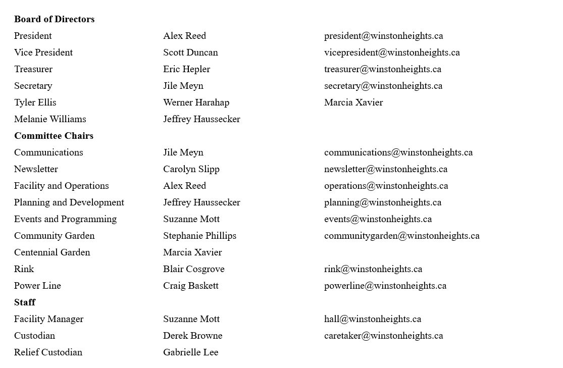 Winston Heights-Mountview Community Association Contact List